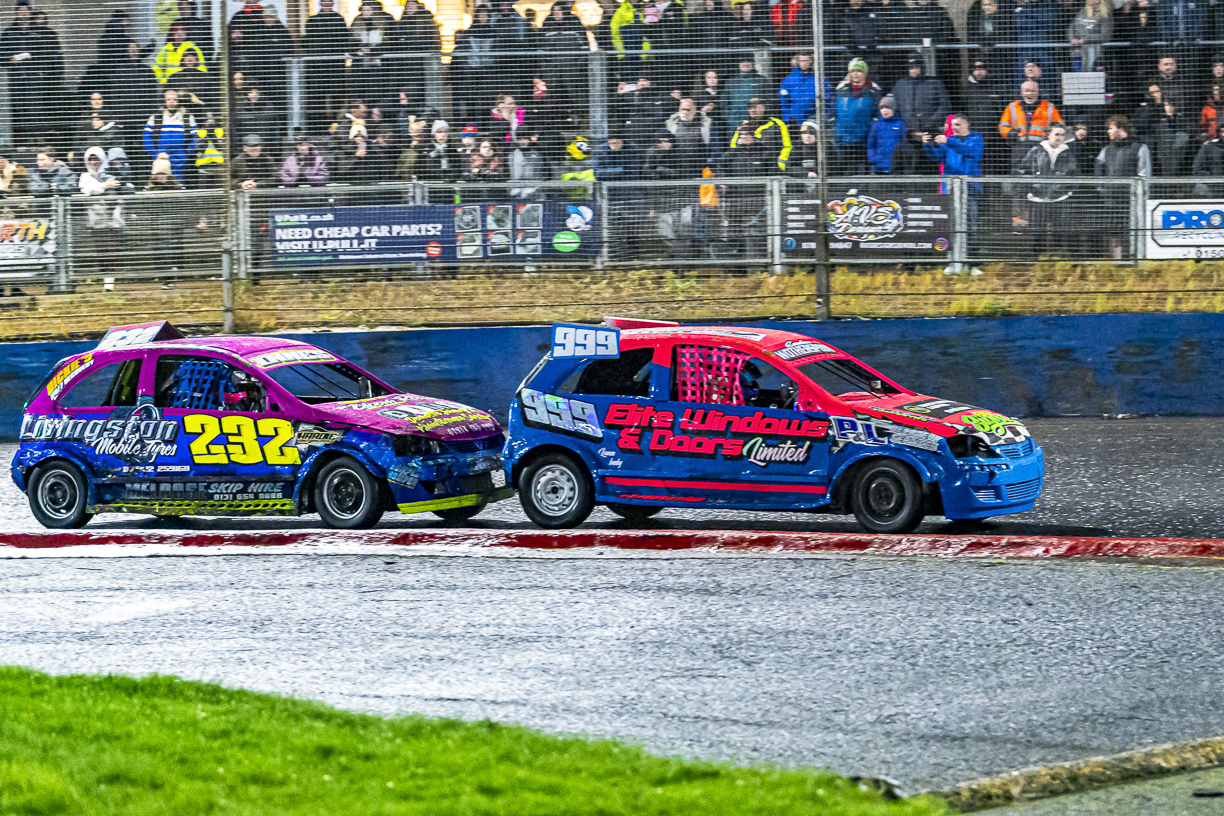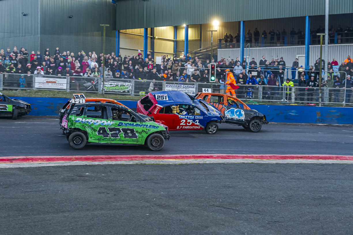 The Micro Bangers headlined the event as they raced for their World Cup. 40 cars took to the grid and it was Scotsman Tam Melrose that claimed victory after an excellent race with Sean McConnachie. Jake Wilson took the best presented car award, whilst Melrose fortunes turned the following race with a mega rollover that ruled him out for the rest of the night. A shift in the garage overnight though seen the 55 car return to the track on the Sunday - though, that did not last long at all as he found himself pinballed around in the Scottish Open race with the car sustaining irrepairable damage. Freddie Speirs claimed the Scottish Open on Sunday with just under 30 cars on track, whilst the DD win at the end of the weekend went the way of 308 Joss Proctor.