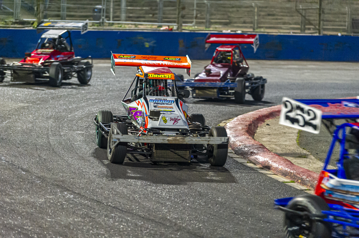 The Stock Rods were with us for the final time this season, with Darren McAlpine making if first outing of the season before heading to Ipswich on the Saturday night. Kevin Stewart looks to have found his feet in the Stock Rod formula having drove consistently well throughout the nights in both wet and greasy conditions, taking a race in in heat 2. Keiron McKinnon is another driver that has showed good progress throughout the year, and took a deserving victory in the opening heat. Teri Linden has arguably been one of the most improved drivers of the season, having taken the fight all the way in the track championship, and it was fitting that she took the meeting final win in the final outing of the year. Robbie Armit and James Halkett completed the top 3.