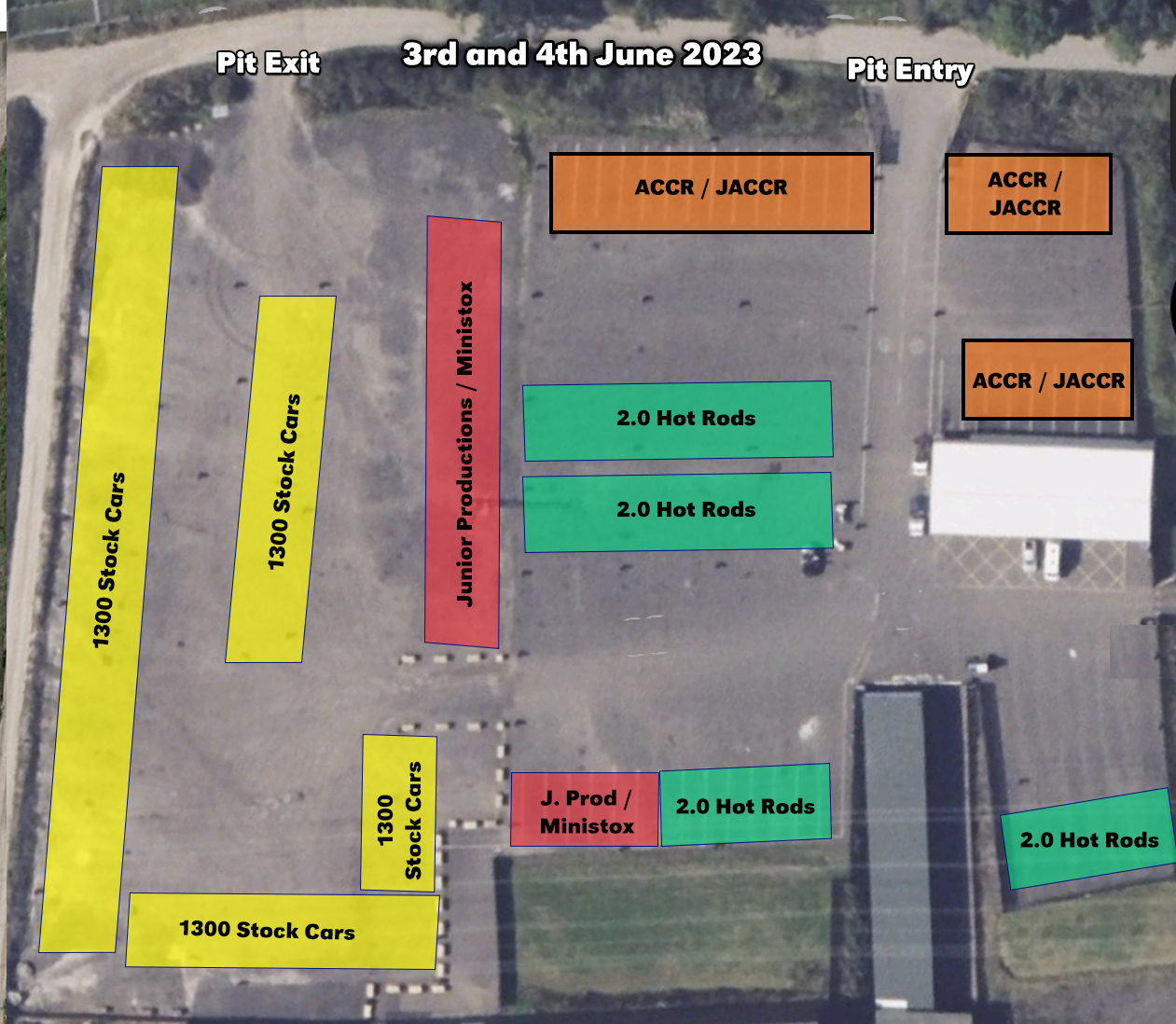 A reminder that no private vehicles should be in the pit area. Only race car and transporter vehicle trailer