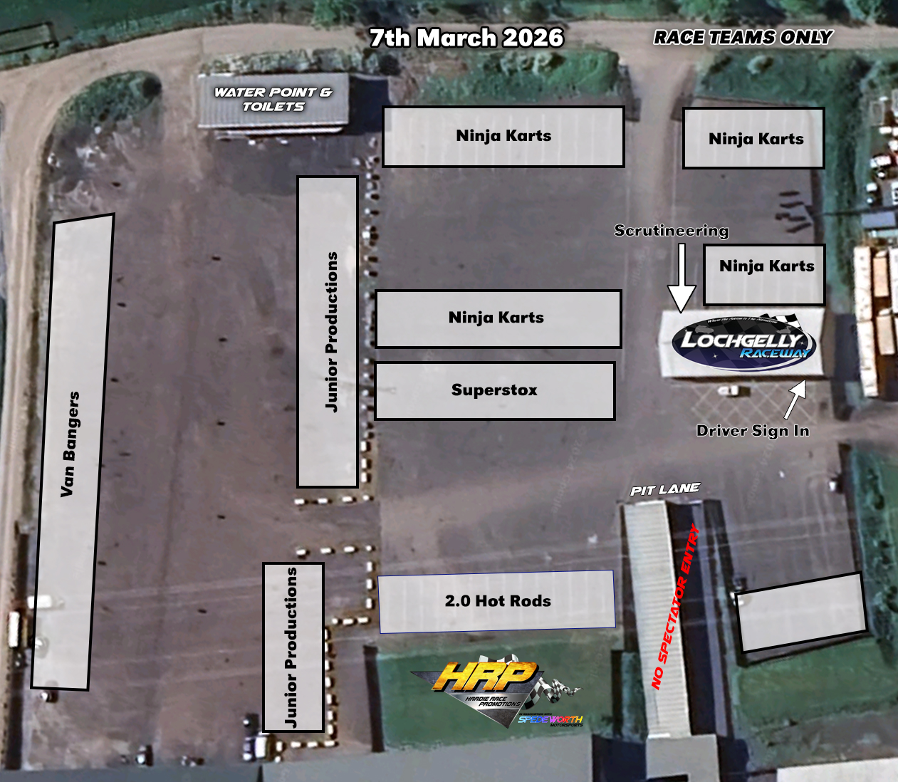 Drivers are reminded that they are responsible for leaving a tidy pit area, utilizing the bins provided, or taking rubbish away with them. Any teams found to be leaving their pit area untidy, will be fined and possibly banned from attending race meetings.All drivers must ensure that they have read the Drivers Briefing Notes. HRP will not be held accountable for a driver failing to read / understand these. Upon signing in, it will be presumed that you have read and understood these notes.Spectator Information
